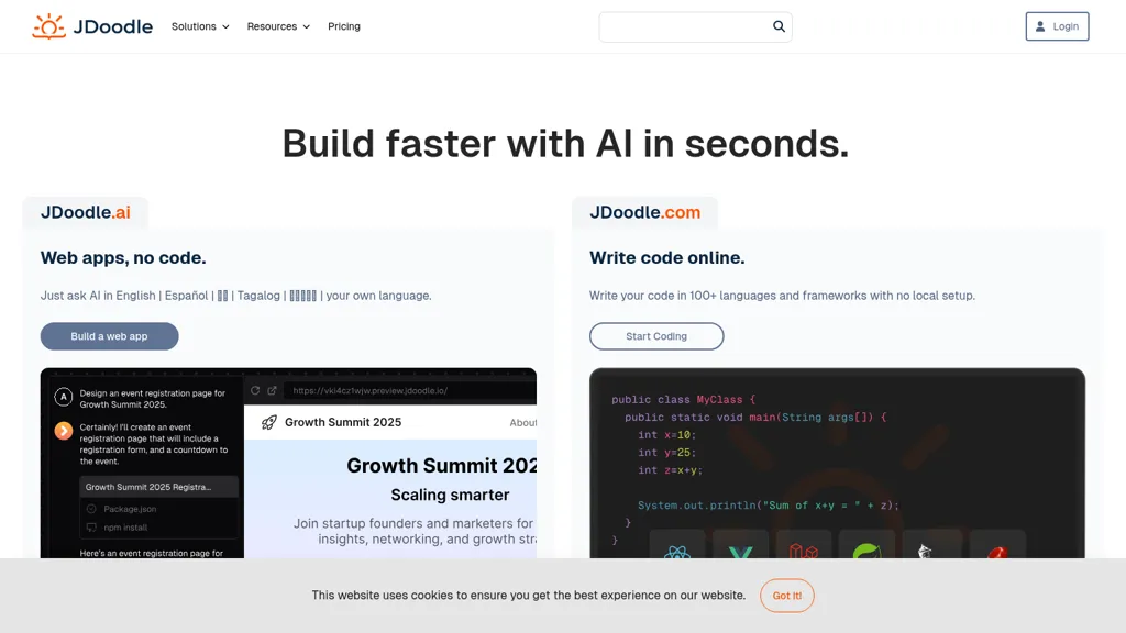 JDoodle is a free AI-powered online coding platform designed for developers, educators, and students to write, execute, and share code efficiently. It supports over 100 programming languages and frameworks, allowing users to conduct live coding sessions, collaborate with team members, and optimize their coding experience. The platform includes features such as smart code suggestions, debugging aids, and access to advanced compiler APIs. JDoodle facilitates direct integration with learning management systems (LMS), enabling educational institutions to enhance coding instruction and assessment.