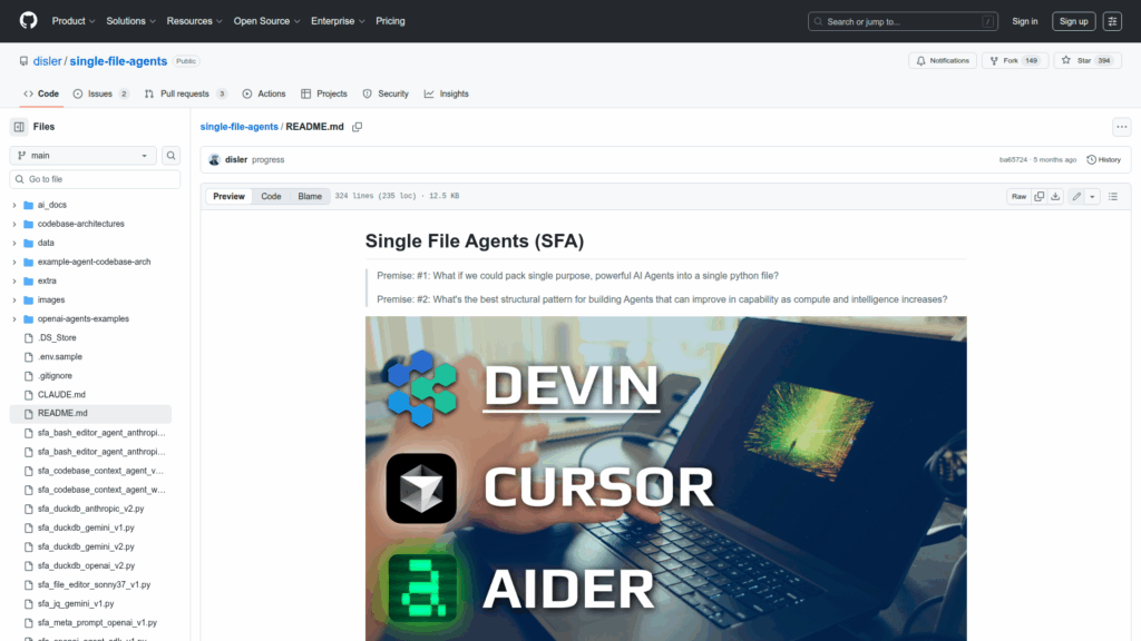 A collection of single-file Python agents designed to demonstrate and deliver focused, single-purpose GenAI workflows. The repository packages small, self-contained scripts that each implement an agent for a practical task such as generating jq commands, running DuckDB SQL queries, transforming CSVs with Polars, scraping web content, editing files and executing bash commands, or producing structured meta-prompts. Agents are built to run via the uv runner and target multiple model providers including Gemini, OpenAI, and Anthropic. The README provides command-line usage examples, required environment variables for API keys, and sample test data. The project is aimed at developers and practitioners who want quick, reproducible examples of prompt engineering, tool use patterns, and how to orchestrate model-based tools in single-file form.